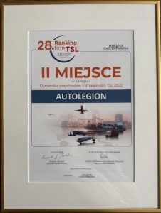 Autolegion wyraża wdzięczność całemu zespołowi za osiągnięcie znakomitych wyników w kategorii „Dynamika przychodów z działalności TSL w 2022 roku” w 28. edycji rankingu firm TSL. Zostanie laureatami w tej kategorii i zajęcie zaszczytnego drugiego miejsca podkreśla nasze zaangażowanie w dążenie do doskonałości nie tylko na rynku polskim, ale i w całej Europie. To osiągnięcie jest dowodem na dobrze skoordynowane wysiłki naszego pasjonującego zespołu, wsparcie naszych cenionych klientów i współpracujących partnerów. Autolegion nadal transportuje dla sukcesu Twojego biznesu.